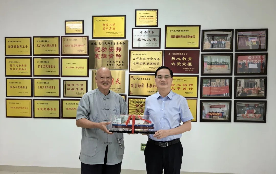 24日下午,集美大學黨委書記邱偉杰、校辦主任黃海宏、校董辦主任呂嫻一行蒞臨廈門建安慈善基金會,拜訪校董孫吉龍先生。孫吉龍先生對邱書記一行的到來表示熱烈歡迎。